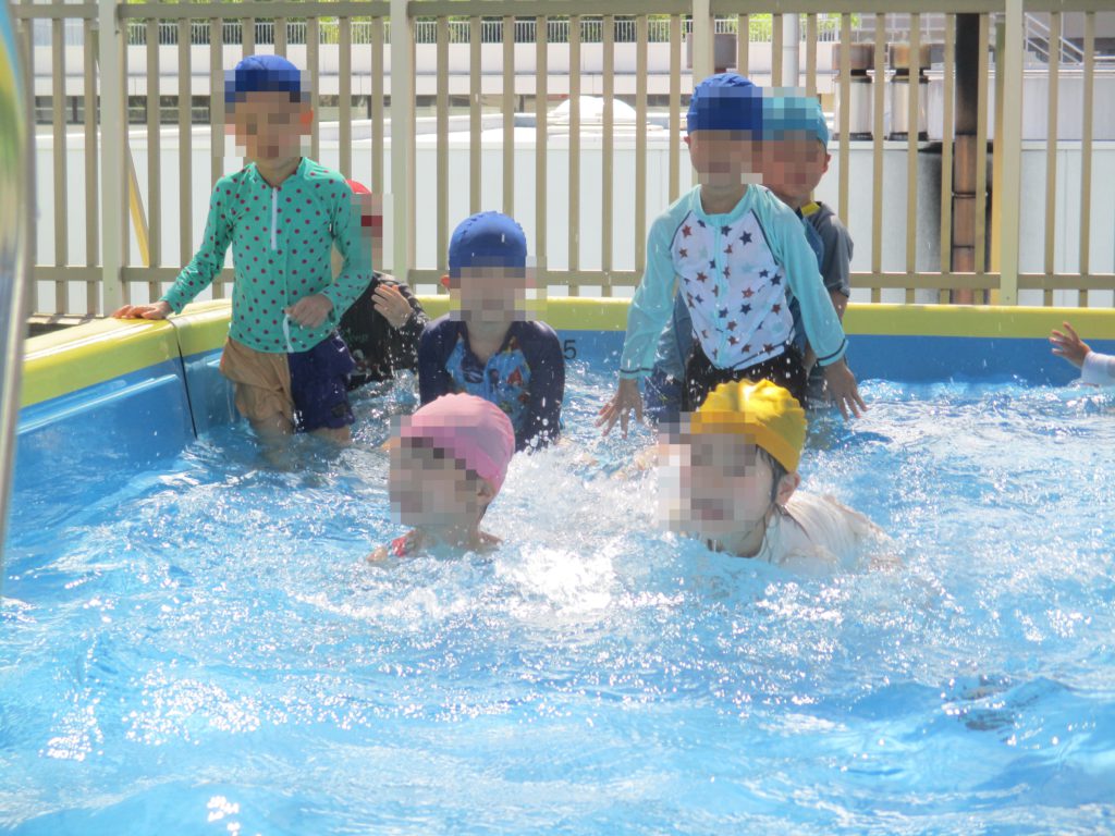 プールが終わり、お部屋に戻ってからもメダルを首にかけ嬉しそうにじーっと見たり、「プール頑張ったからぴょん吉がくれたんだよ」と他クラスの大人に話す子どもたちです😊
