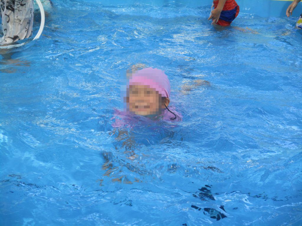 ぴょん吉が見ている中、ワニ泳ぎ・恐竜泳ぎ・トカゲ泳ぎ・イルカジャンプ・伏し浮き・蹴伸びと、色々な泳ぎ方を自信満々で泳ぎました!