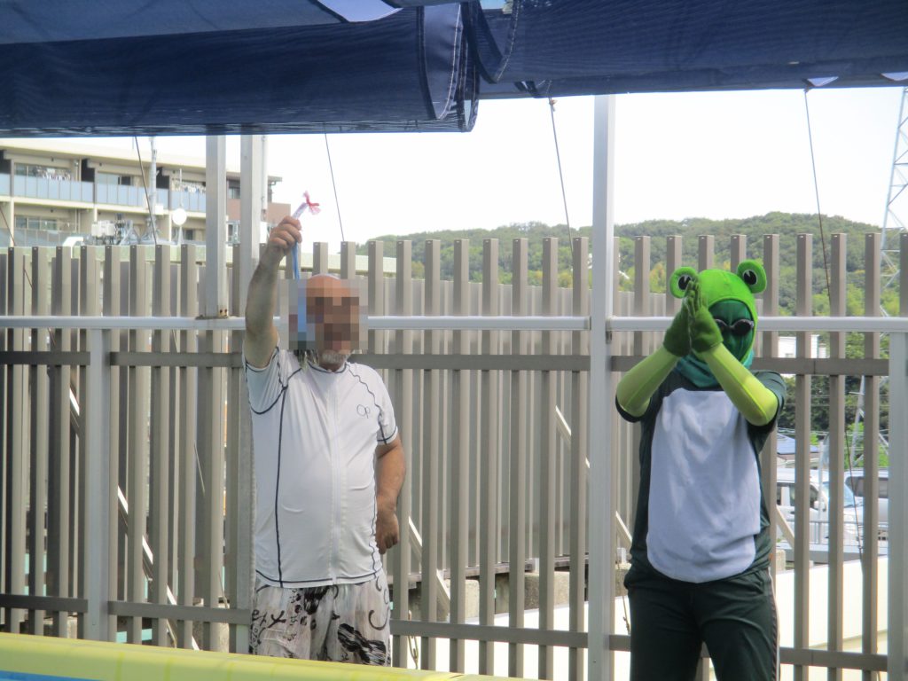 みんな泳ぎ終わるとなんとぴょん吉から子どもたちへ、”プールがんばったね”のメダルのプレゼントをもらいました🏅