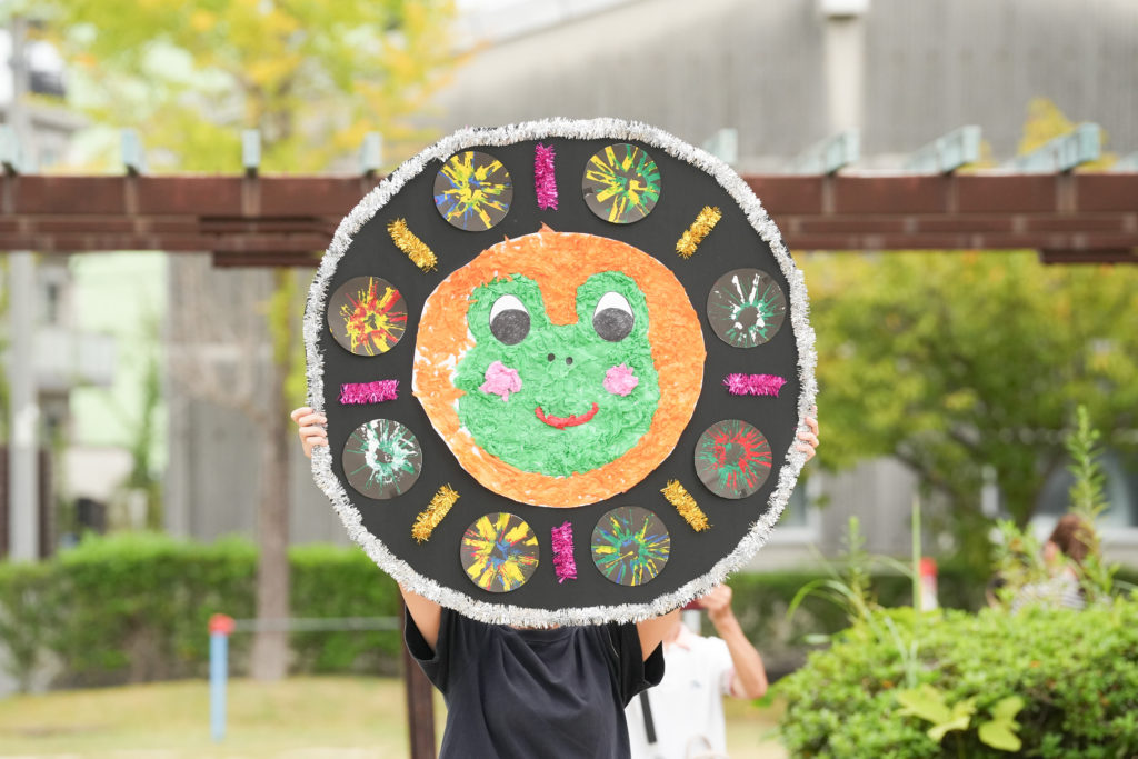プール開きとプール閉めに鳴子池からやってきた「カエルのぴょんきち」。その友達がカエルお兄ちゃん。プールの時からカエルお兄ちゃんとやりとりを楽しんできた子どもたち。運動会当日には親子でカエルに変身してカエル兄弟。カエルお兄ちゃんと一緒に鳴子池へ冒険に出かけていきました。