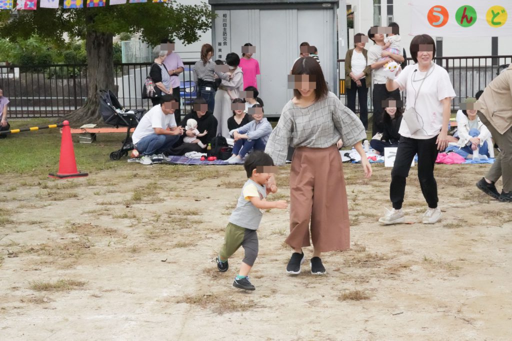 あいかわ保育園のうんどうかいは、親子みんなで楽しむうんどうかいです。日頃、保育園で楽しんでいるあそびを親子で楽しみました。