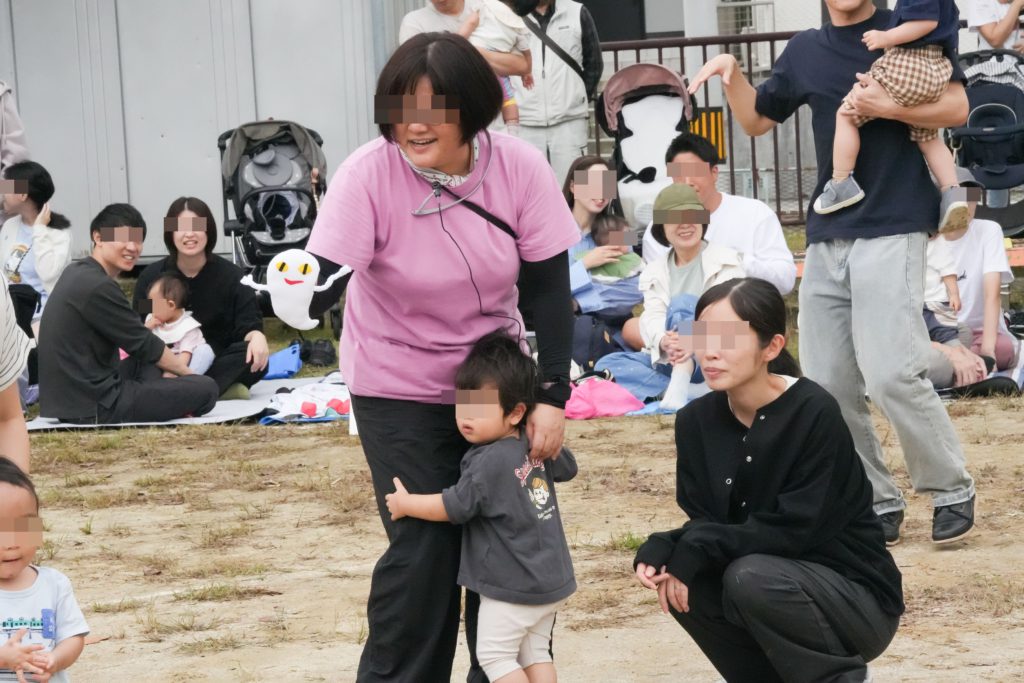 クラス対抗で保護者の玉入れ大会も盛り上がりました。今年の優勝は、つばめグループでした!