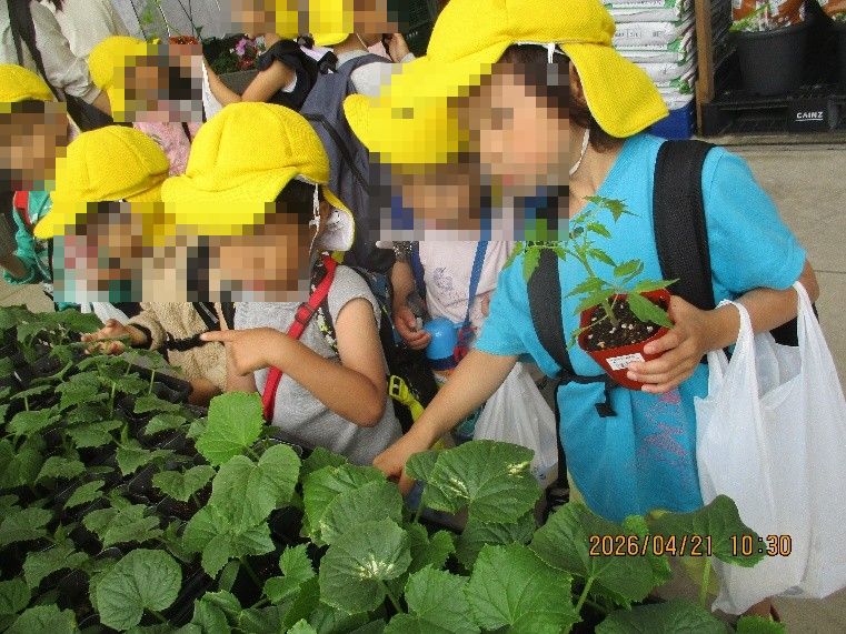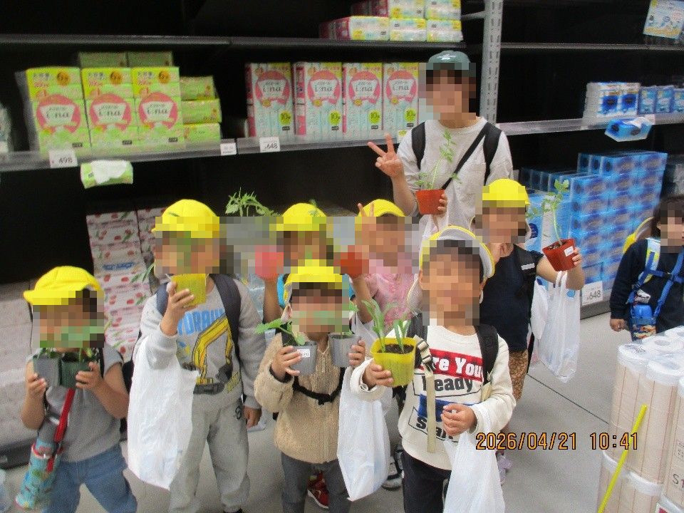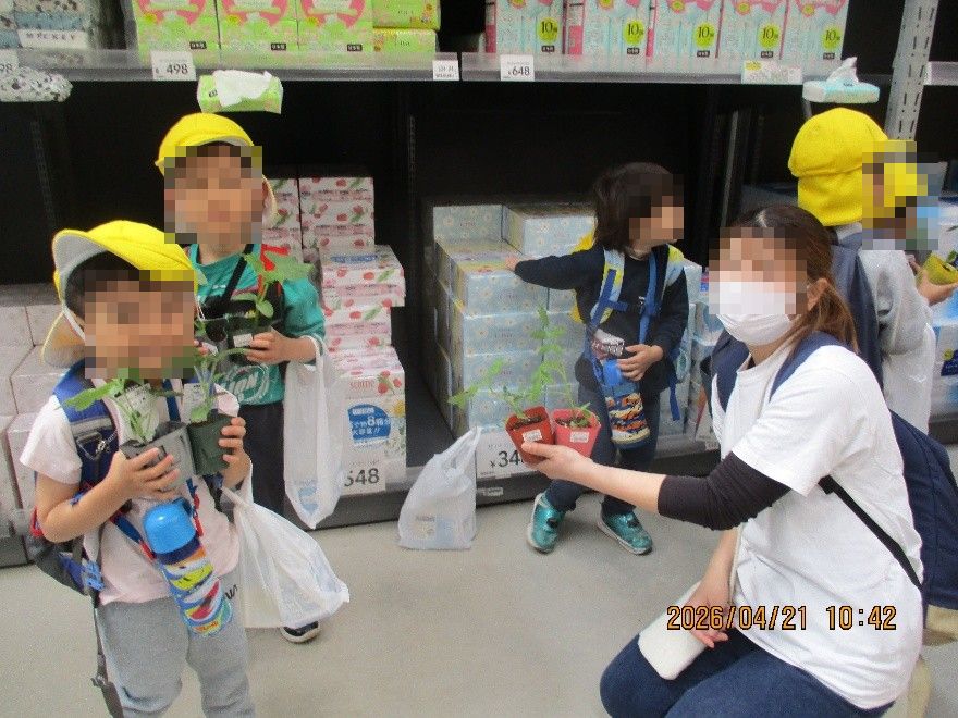 お部屋の皆で決めた野菜の苗をさくら(5歳児)さんが代表でカインズへ買いに行ってきました!